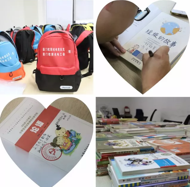 活動(dòng)共募集28箱衣物,1箱書(shū)籍,160雙鞋子和現(xiàn)金3640元。授人以魚(yú),不如授人以漁,乾照光電黨總支討論決定,用全部現(xiàn)金購(gòu)買(mǎi)了20個(gè)書(shū)包、20套文具和475本書(shū)籍,并在每本書(shū)上都寫(xiě)下了鼓勵(lì)和祝福,希望貧困地區(qū)的兒童能夠努力學(xué)習(xí)文化,用知識(shí)改變命運(yùn)。