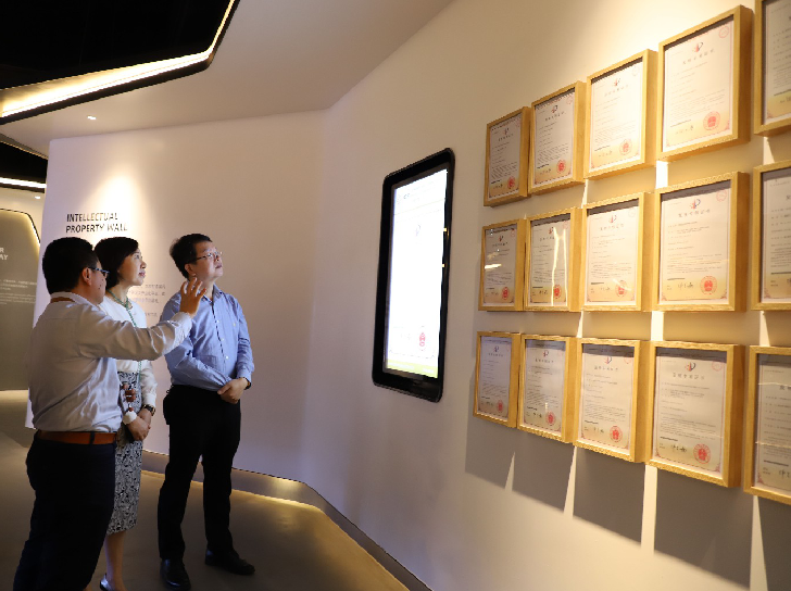 聽取了乾照光電知識(shí)產(chǎn)權(quán)工作情況介紹后,盧局長(zhǎng)對(duì)乾照光電成立知識(shí)產(chǎn)權(quán)戰(zhàn)略部的做法表示贊賞,并祝賀乾照光電獲得國(guó)家級(jí)知識(shí)產(chǎn)權(quán)示范企業(yè)榮譽(yù)。盧局長(zhǎng)在知識(shí)產(chǎn)權(quán)榮譽(yù)墻前駐足許久,勉勵(lì)乾照光電要加強(qiáng)技術(shù)創(chuàng)新,打造企業(yè)專利、商標(biāo)、著作權(quán)的知識(shí)產(chǎn)權(quán)綜合實(shí)力。