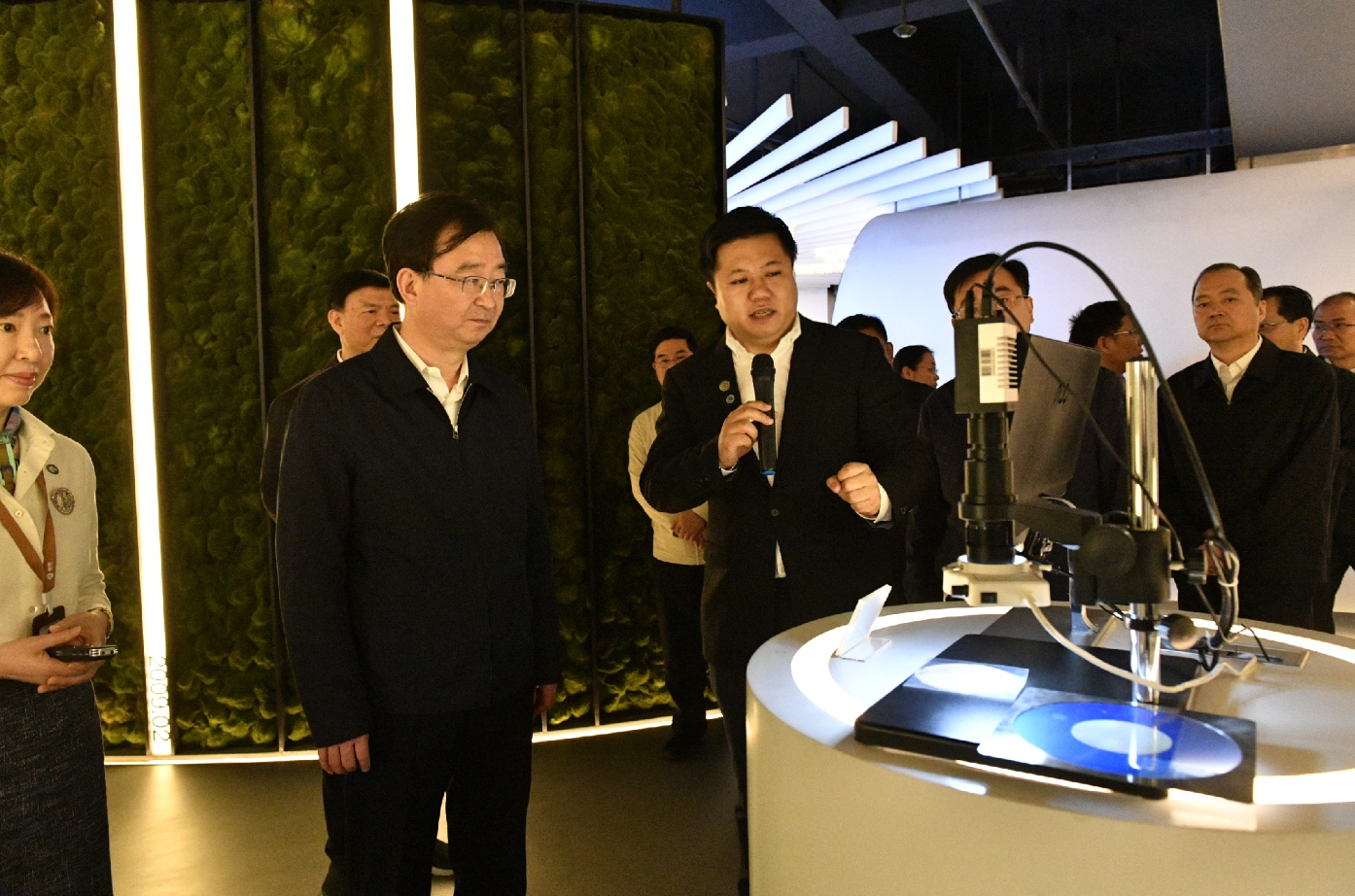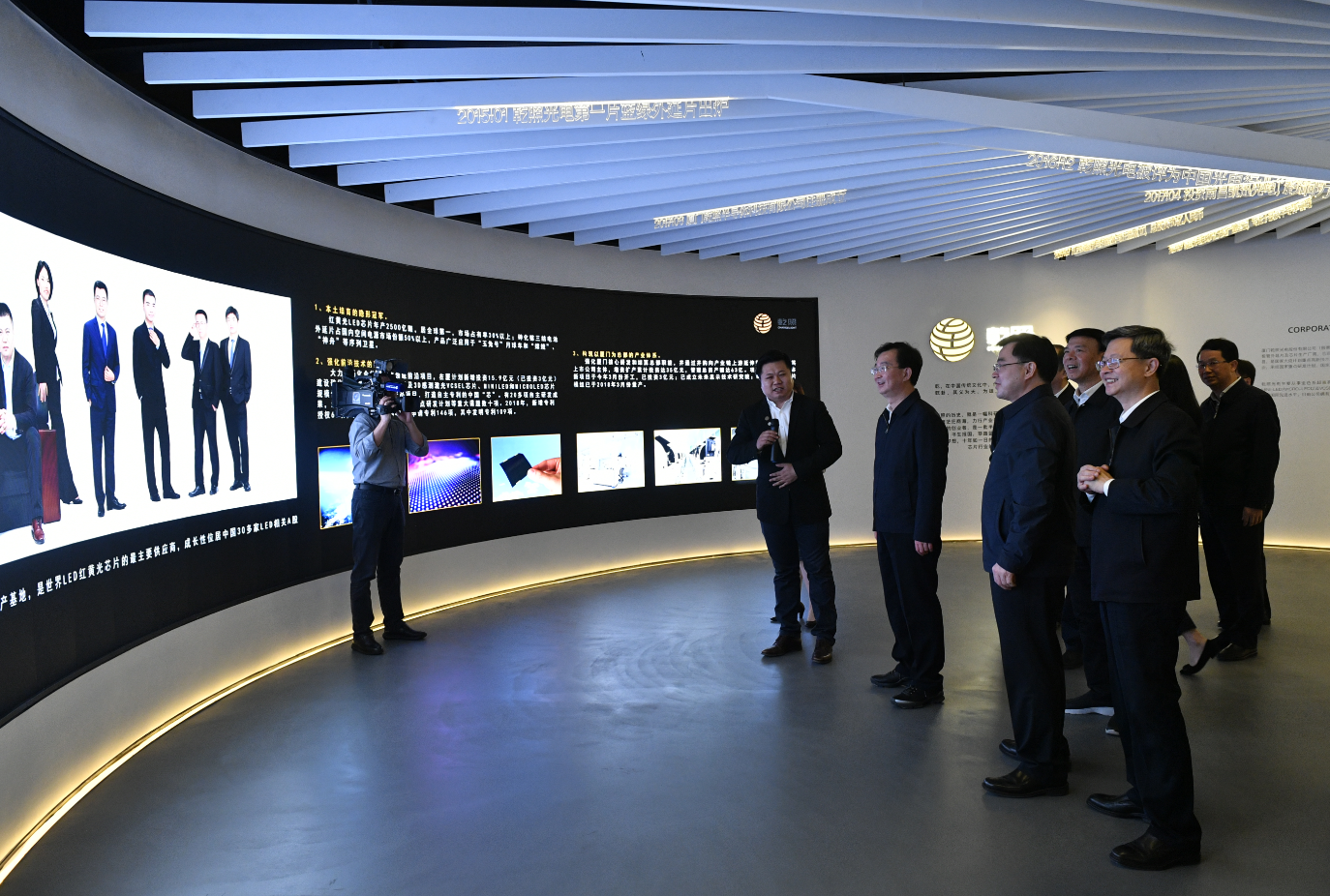 在公司展廳,王書記認(rèn)真聽取了金章育關(guān)于公司發(fā)展情況的匯報(bào)。乾照光電擁有全球最大的砷化鎵化合物半導(dǎo)體芯片生產(chǎn)基地,成長(zhǎng)性位居中國(guó)30多家LED相關(guān)A股上市公司之首,這引起了王書記的濃厚興趣。他詢問(wèn)了公司的技術(shù)研發(fā)投入情況,當(dāng)了解到公司每年都投入大量資金用于技術(shù)研發(fā)的情況后,他對(duì)乾照光電依靠技術(shù)創(chuàng)新驅(qū)動(dòng)企業(yè)發(fā)展的戰(zhàn)略表示了高度的肯定和贊許。