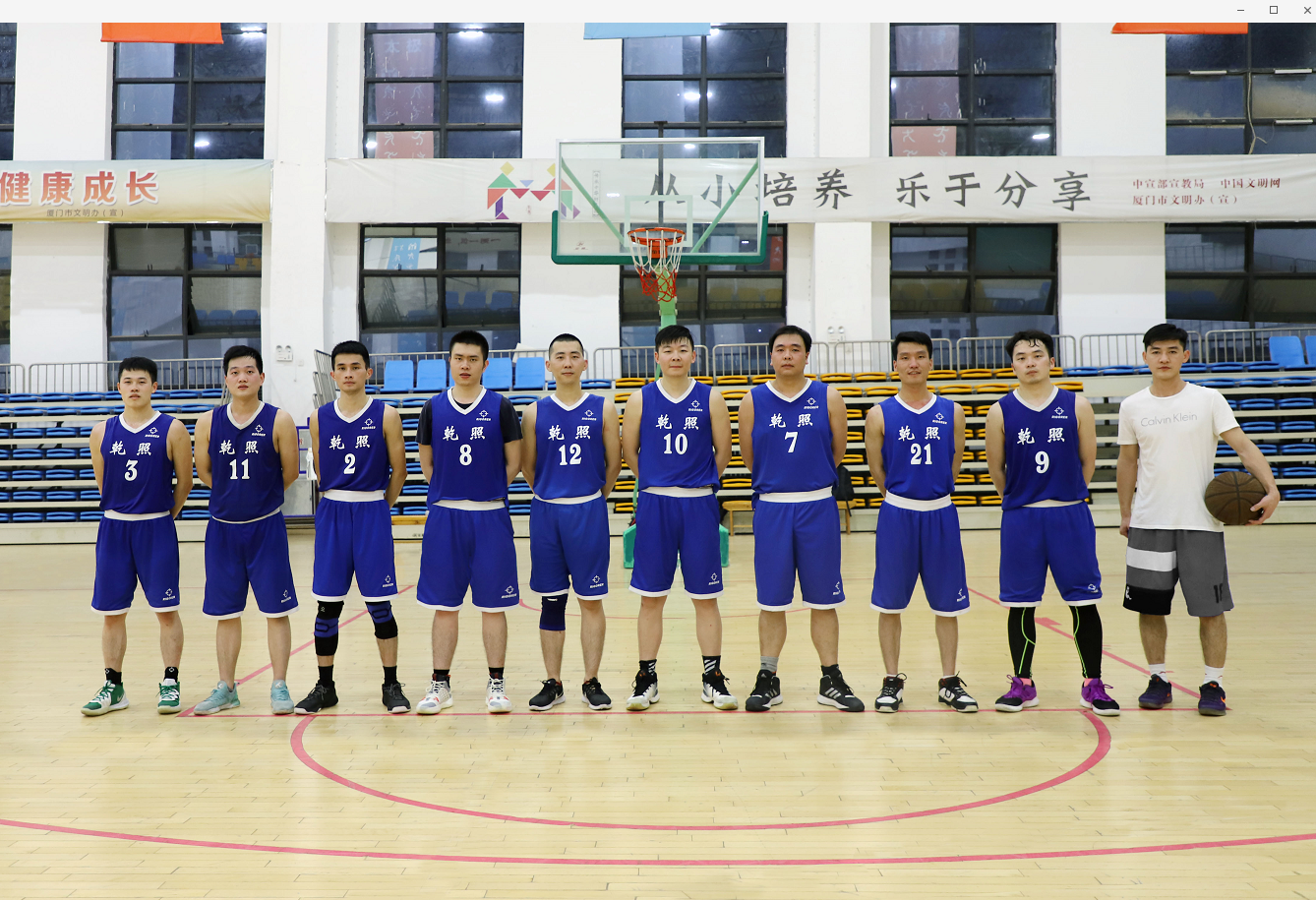 圖為籃球隊(duì)隊(duì)員合影,從左往右依次為劉偉文(芯片部)、肖遙(外延部)、陳帥城(整合部)、黃偉鵬(外延部)、曹衍燦(芯片部)、劉譽(yù)?。ㄐ酒浚?、魏振東(研發(fā)部)、盧泉柱(總裁辦)、林小強(qiáng)(采購部),右一為教練。