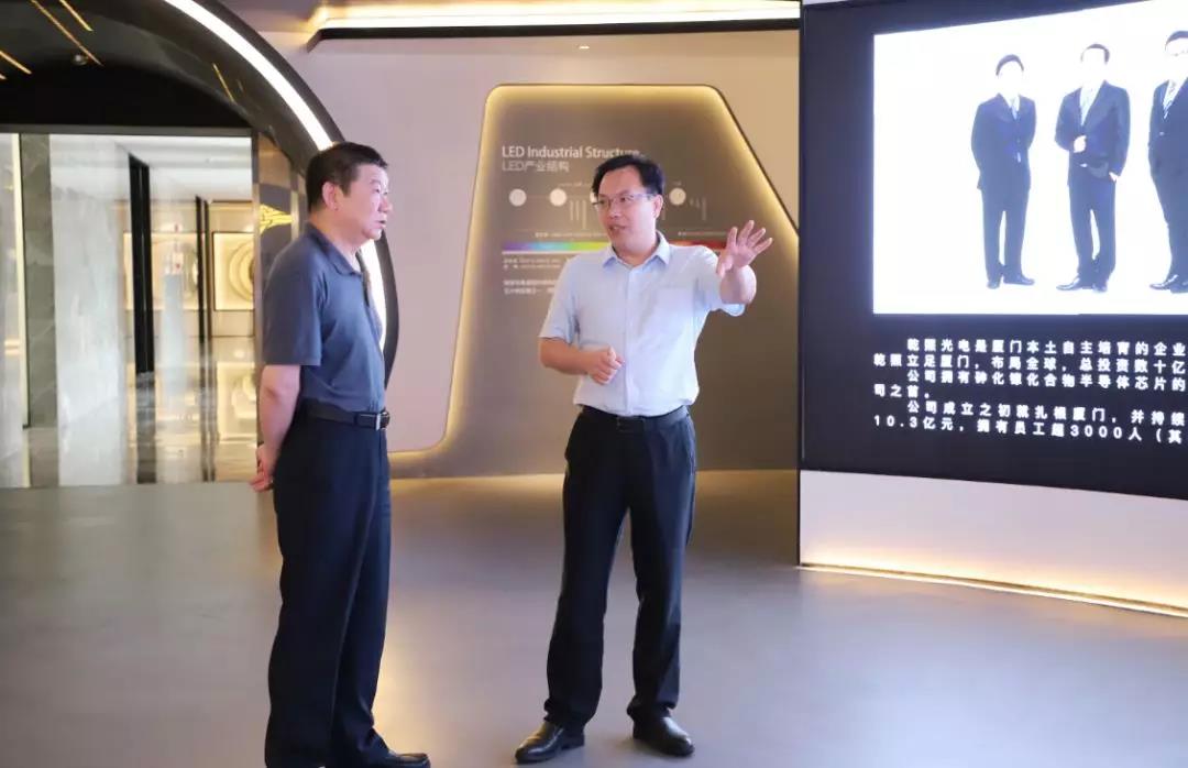 7月4日,廈門(mén)市科技局局長(zhǎng)孔曙光一行蒞臨乾照光電調(diào)研指導(dǎo)。市科技局綜合處處長(zhǎng)黃穎、科技合作與成果轉(zhuǎn)化處處長(zhǎng)吳志偉、高新處處長(zhǎng)陳君玉陪同調(diào)研。乾照光電總裁蔡海防,未來(lái)顯示研究院院長(zhǎng)柯志杰等公司領(lǐng)導(dǎo)陪同接待。