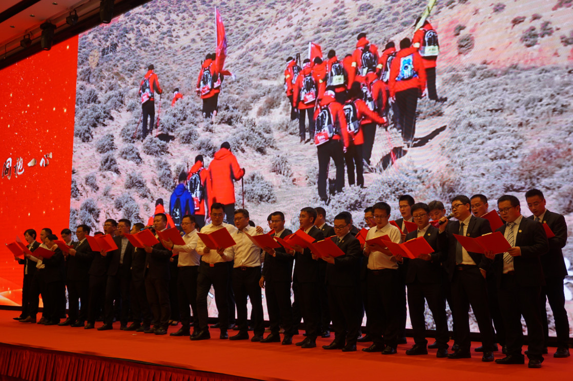 為增加晚宴歡慶氣氛,集團(tuán)總部尾牙晚宴特別安排了慶生環(huán)節(jié),為全體12月生日員工共賀誕辰。董事長(zhǎng)金章育作為壽星代表與壽星們一同切蛋糕做游戲。最后,參與張掖徒步的高管們共同上臺(tái),合唱一曲《壯志在我胸》,將晚宴現(xiàn)場(chǎng)推向高潮。