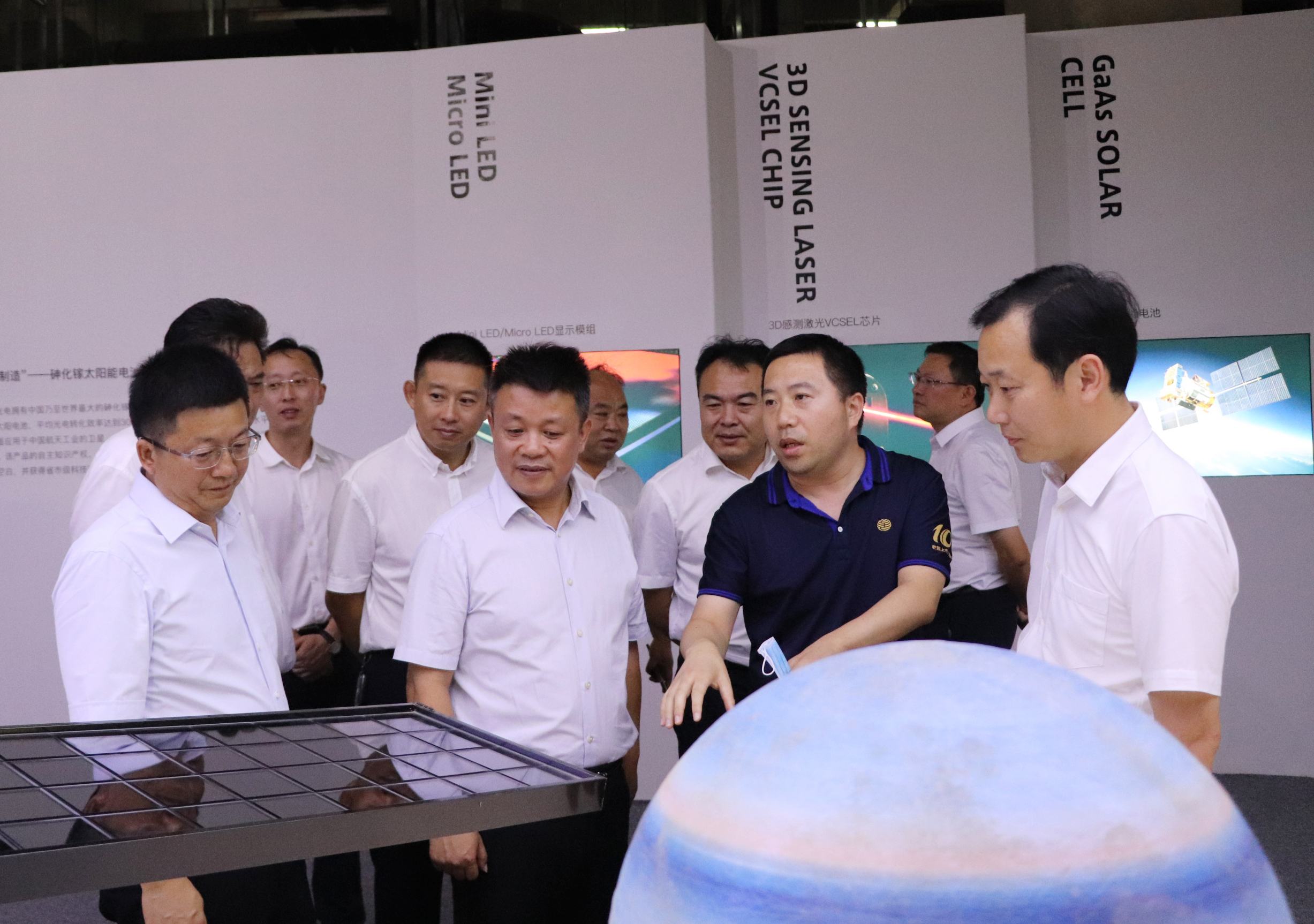 在公司展廳,王書記一行聽取了劉兆關于公司發(fā)展歷程、建設規(guī)劃、產品應用等情況的匯報,詳細了解了公司產品升級、技術創(chuàng)新及未來顯示技術規(guī)劃,并針對公司自主研發(fā)的高新技術產品進行了探討與交流。