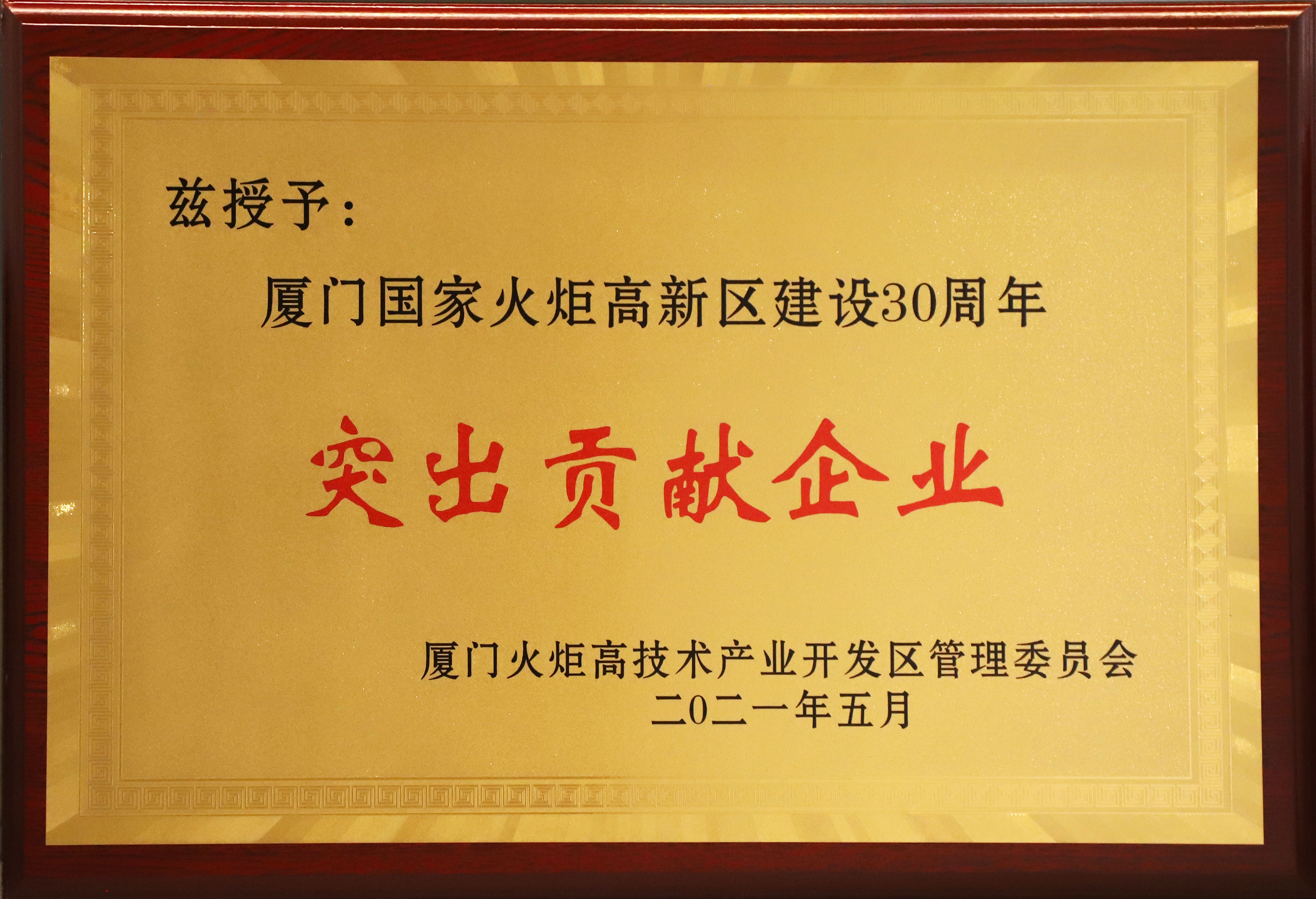 廈門乾照光電榮獲“廈門國家火炬高新區(qū)建設(shè)30周年突出貢獻(xiàn)企業(yè)“稱號