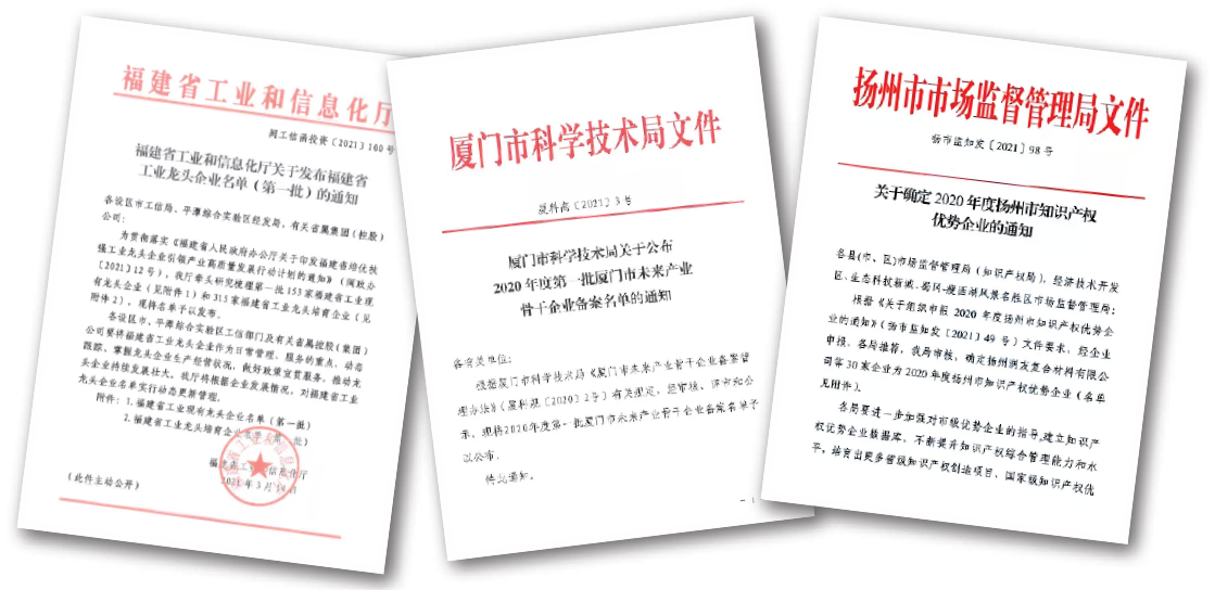 此外,廈門乾照光電入選“福建省工業(yè)龍頭企業(yè)”、“廈門市未來產(chǎn)業(yè)骨干企業(yè)”;揚(yáng)州乾照光電入選“揚(yáng)州市2020年知識產(chǎn)權(quán)優(yōu)勢企業(yè)”、“揚(yáng)州市2020年工業(yè)百強(qiáng)企業(yè)”、“2020年發(fā)明專利十強(qiáng)企業(yè)”。