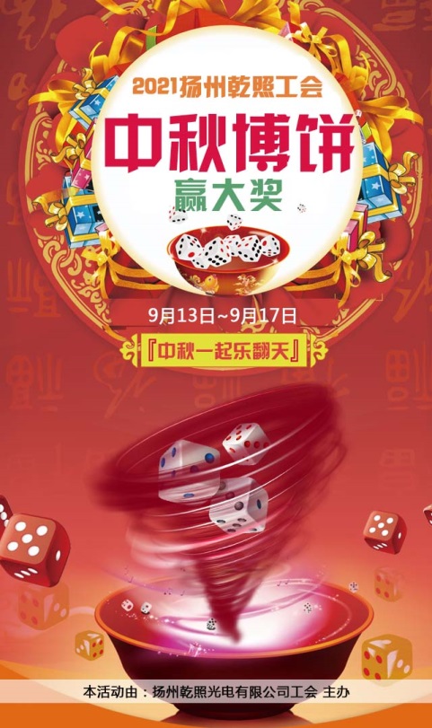 中秋明月醉美滿,人間天涯共此時。受之前疫情的影響,今年揚州乾照的傳統(tǒng)博餅活動轉(zhuǎn)移到了線上。此次線上博餅,獎池重磅加碼:獎品更多,覆蓋面更廣。此外,揚州乾照也為大家準備了月餅搭配牛奶的中秋福利套裝,讓員工中秋一起樂翻天!