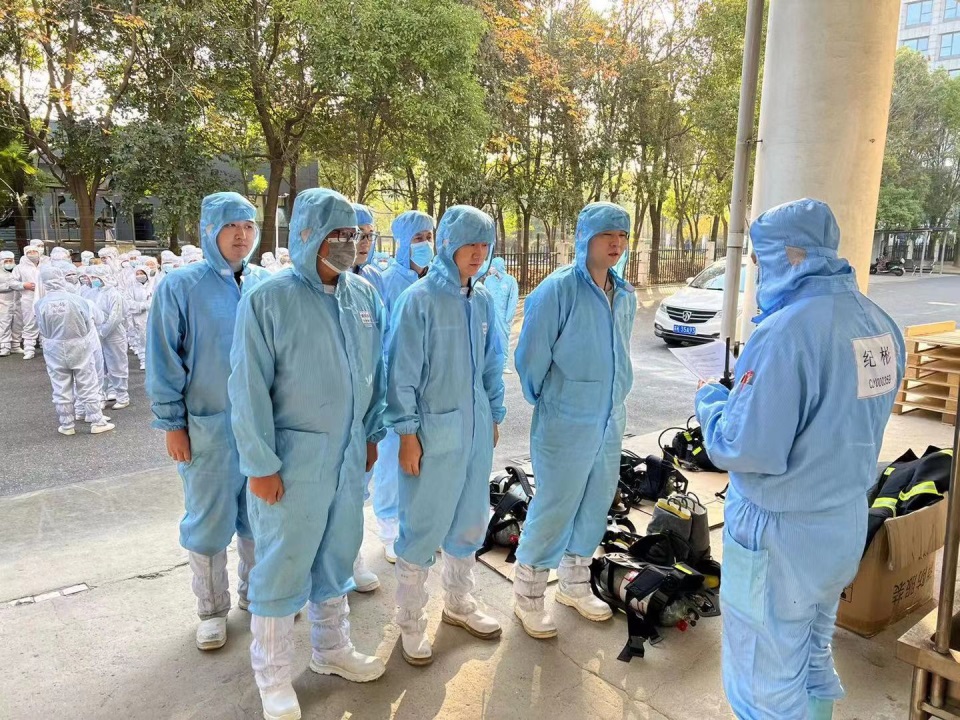 為提升員工對(duì)緊急意外事件的處置反應(yīng)能力,熟悉各種滅火器的使用,檢驗(yàn)應(yīng)急預(yù)案的實(shí)用性和可操作性,總結(jié)應(yīng)急實(shí)操演習(xí)過程中的優(yōu)缺點(diǎn)。11月25日,揚(yáng)州乾照光電模擬外延部清洗間火災(zāi),進(jìn)行車間人員疏散、應(yīng)急人員現(xiàn)場(chǎng)滅火消防演練。
