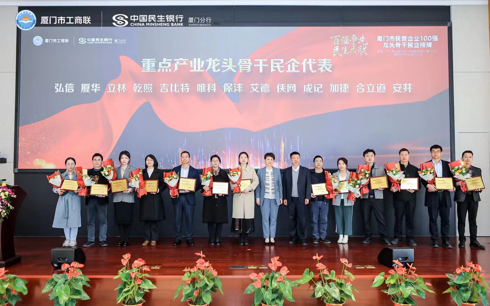 為進(jìn)一步弘揚企業(yè)家精神,推動民營企業(yè)在黨的二十大精神引領(lǐng)下,開啟新征程,奮力新發(fā)展,2月17日上午,2022廈門市民營企業(yè)100強暨龍頭骨干民企授牌儀式在鷺島隆重舉行。廈門乾照光電股份有限公司榮獲 2022廈門市民營企業(yè)100強第74位、2022年度廈門市重點產(chǎn)業(yè)(半導(dǎo)體與集成電路)龍頭骨干民營企業(yè)。