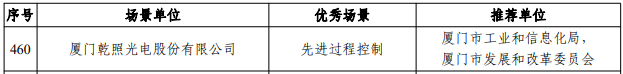 近期,乾照光電成功入選工業(yè)和信息化部公布的“2023年度智能制造示范工廠揭榜單位和優(yōu)秀場(chǎng)景名單”及福建省工業(yè)和信息化廳公布的“2023年省級(jí)智能制造優(yōu)秀場(chǎng)景和示范工廠項(xiàng)目公示名單”。