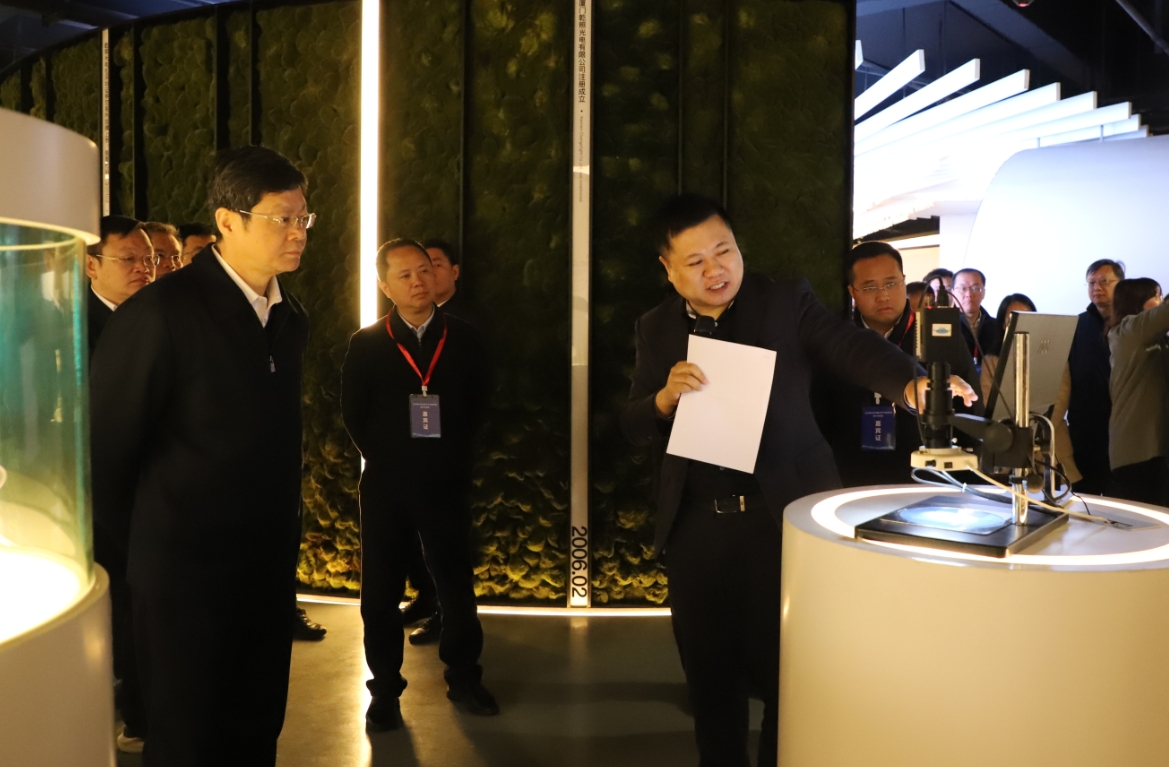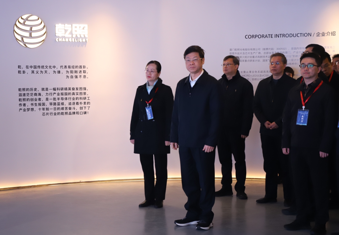 為考察縣域重點產(chǎn)業(yè)鏈發(fā)展,1月29日福建省副省長林瑞良、黨組成員康濤帶隊走訪乾照光電。省政府辦公廳、省工信廳、省發(fā)改委、科技廳、財政廳、省政府發(fā)展研究中心推動縣域重點產(chǎn)業(yè)鏈高質(zhì)量發(fā)展專班成員單位有關(guān)負(fù)責(zé)同志;廈門、漳州、泉州、龍巖、三明市政府分管領(lǐng)導(dǎo)、市工信局有關(guān)負(fù)責(zé)同志及所轄區(qū)(市、區(qū))政府主要領(lǐng)導(dǎo)參加考察。乾照光電董事長金章育陪同接待。