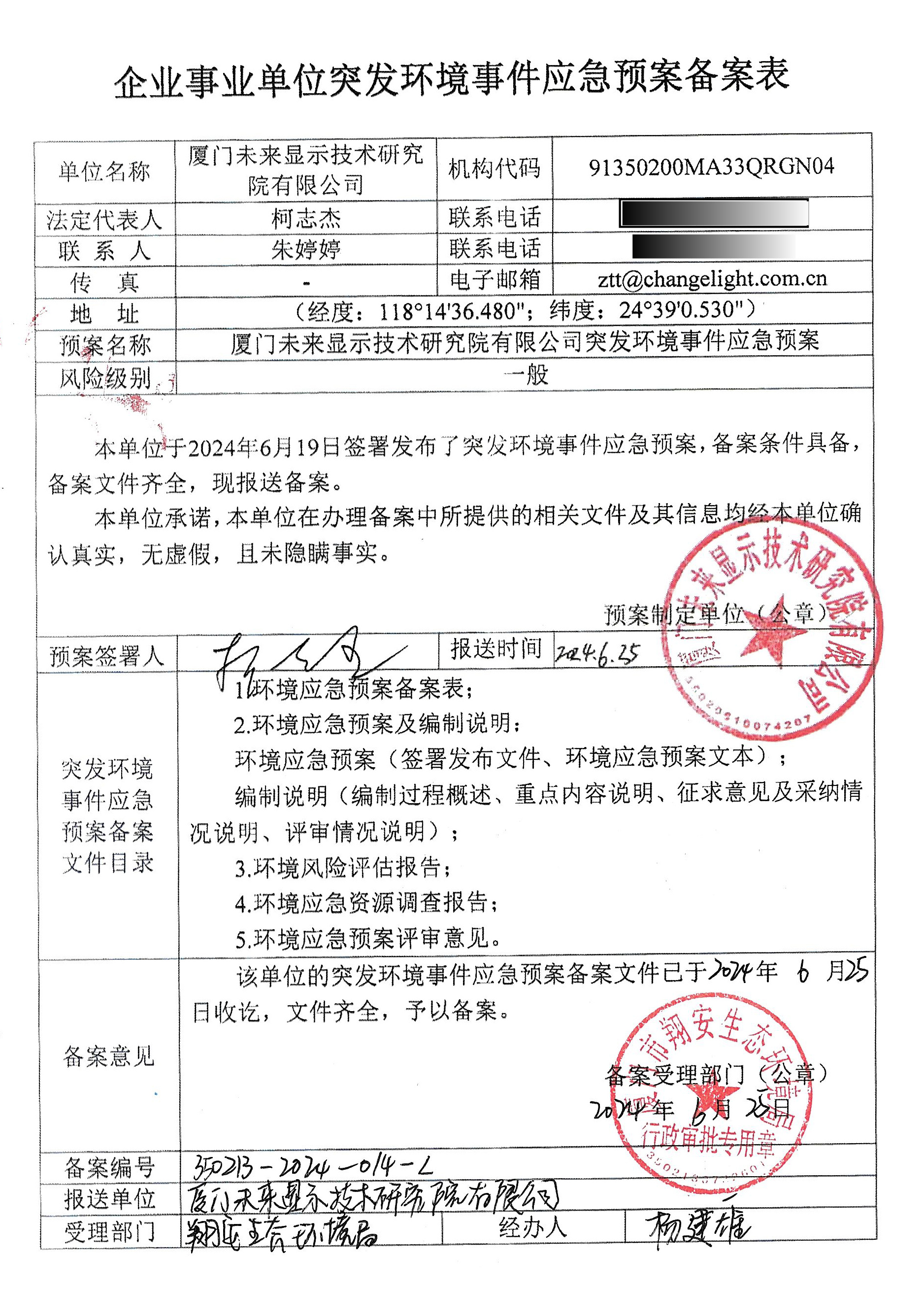 附件:廈門未來顯示技術(shù)研究院有限公司突發(fā)環(huán)境事件應(yīng)急預(yù)案
