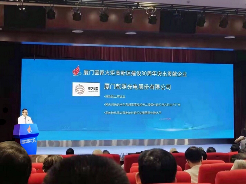 乾照光電榮獲“廈門國家火炬高新區(qū)建設(shè)30周年突出貢獻企業(yè)”稱號