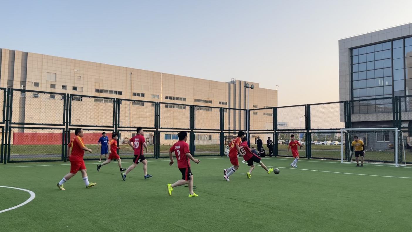 接下來(lái)的綠茵賽場(chǎng),雙方隊(duì)員頑強(qiáng)拼搏,進(jìn)攻、防守,球員們腳下功夫了得,不論是搶球,傳踢,氣勢(shì)凌厲。場(chǎng)外觀眾也激情洋溢,縱情地為隊(duì)員們加油,現(xiàn)場(chǎng)氣氛十分熱烈。在經(jīng)過(guò)幾輪積分循環(huán)賽,最終綜合隊(duì)、外延隊(duì)、芯片隊(duì)和廠務(wù)隊(duì)挺進(jìn)決賽。